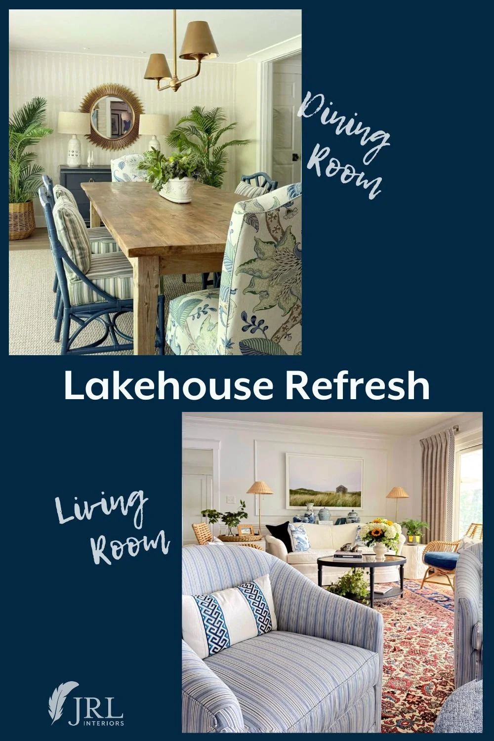 Using a color palette of blues and greens paired with neutrals to reflect the lakefront location and existing items, and armed with information on how the client wished to use the house, we began the process of problem solving. We wanted to polish the progress that had already been made in the house and help her create the comfortable, casually elegant retreat that she wanted to acheive. .